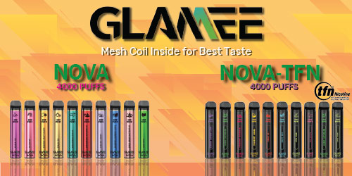 Glamee Vape has introduced the Glamee Nova with 4000 PUFFS, Battery Capacity of 2200mAh, 33available Flavors, 5% Salt Nicotine, 16ml of E-liquid thus making it by far our biggest seller in our vape disposable collection. It's an innovative vape that actually uses a Mesh Coil rather than just cotton which allows it to vape better than most disposables giving you the best taste in the market, as the first to the last puff will never change. The E-liquid is of top quality from the best vendor ZINWI.