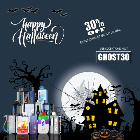 HALLOWEEN SALE on all vape devices less 30% plus, enter discount code GHOST30 at check out to receive your discount.